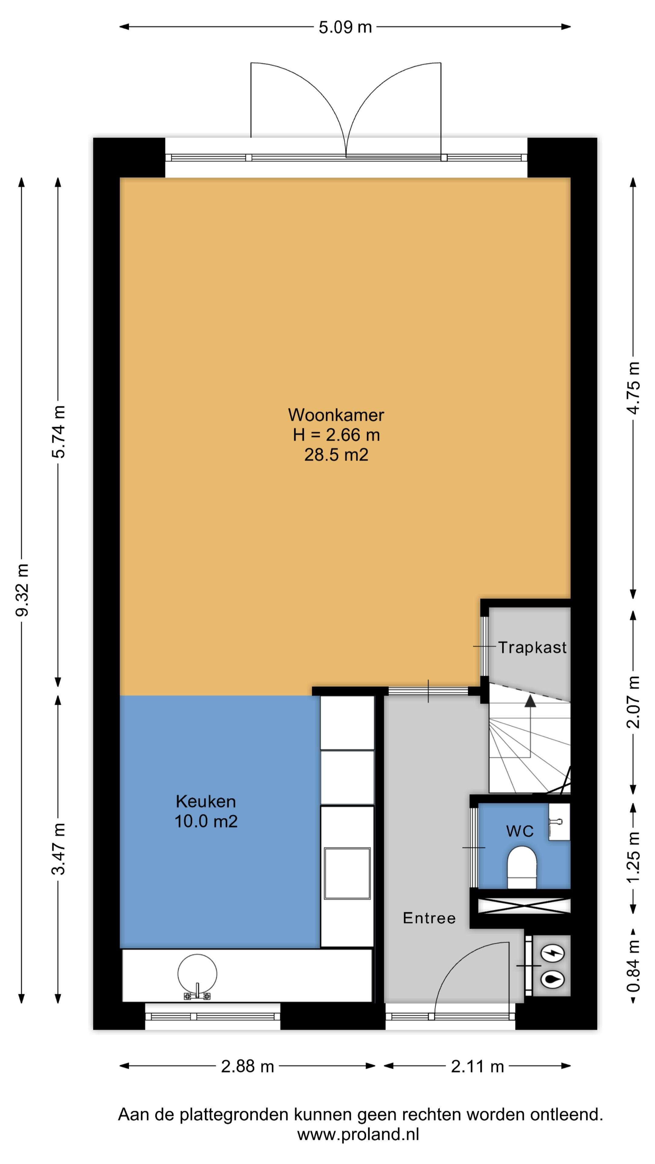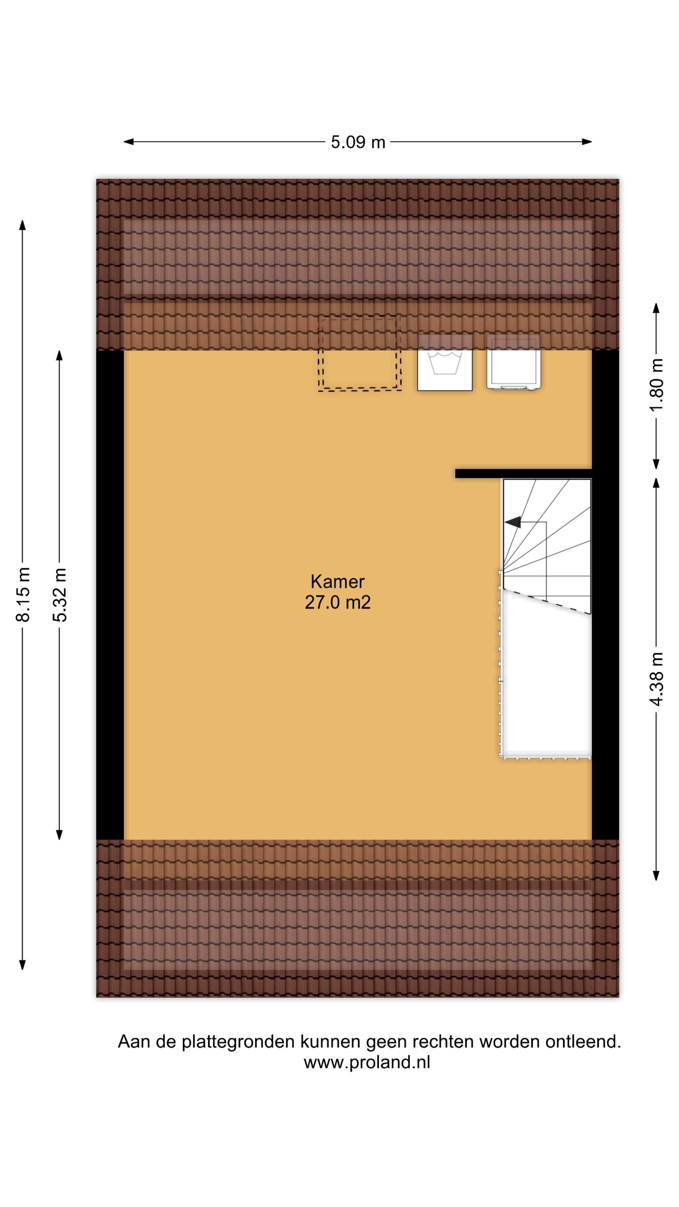 72 m² (13,00 meter diep en 5,50 meter breed)