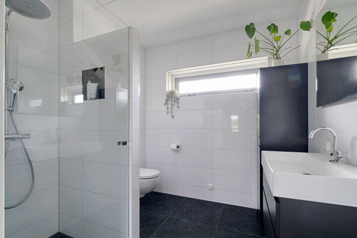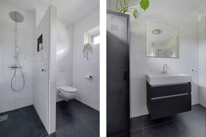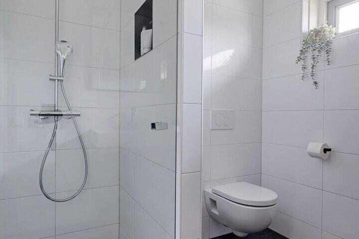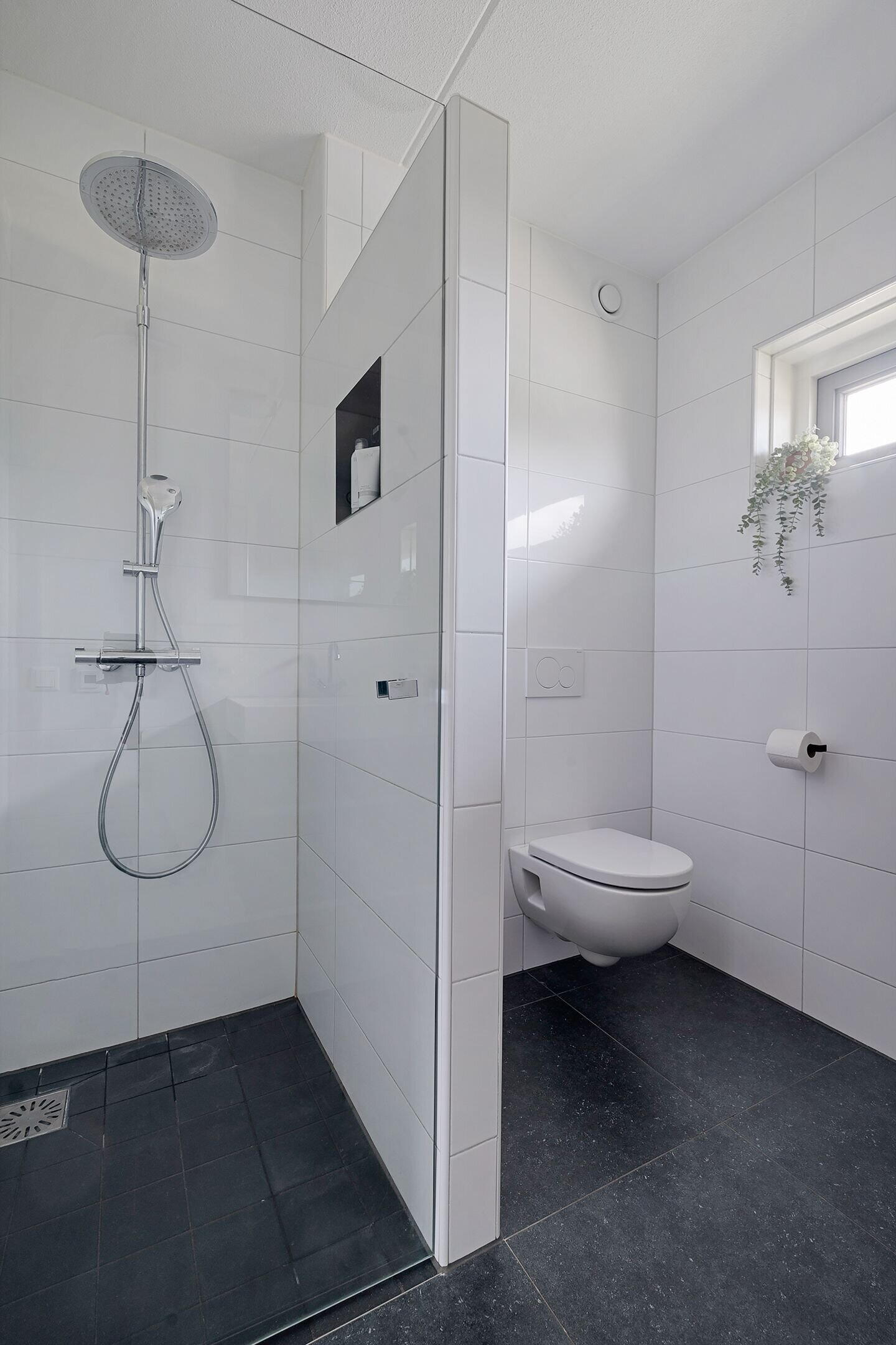 Inloopdouche, toilet, vloerverwarming, en wastafelmeubel