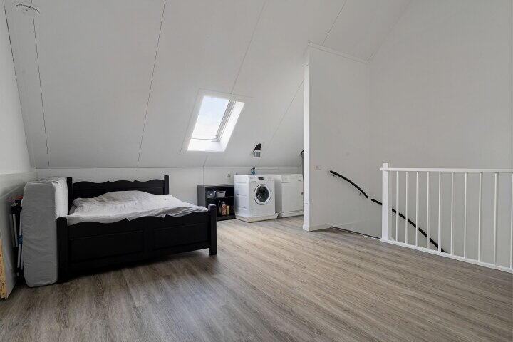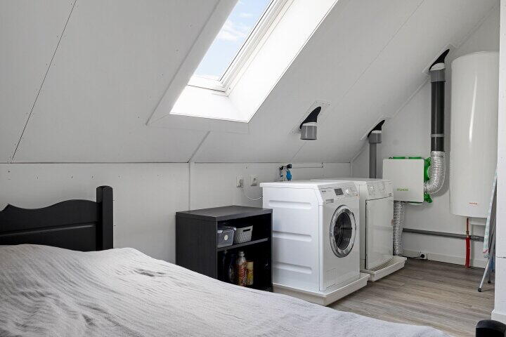 - De zolderruimte is zeer groot en heeft nu een open indeling, hier zijn tevens de witgoedaansluitingen, de elektrische boiler en de MV installatie aanwezig.